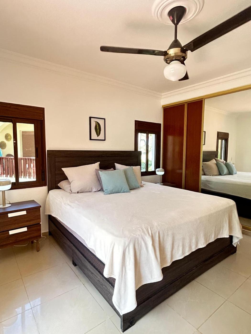 The spacious apartment with a terrace and pool views features 2 bedrooms, a living room, a flat-screen TV, an equipped kitchen with a microwave and a fridge, and 2 bathrooms with a hot tub. For added privacy, the accommodation has a private entrance and is protected by full-day security.